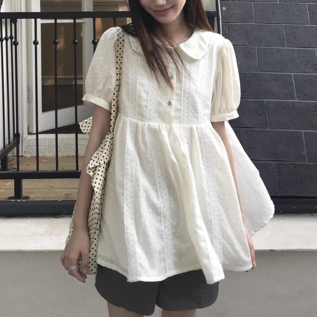 レディース 半袖 トップス ブラウス 白 ホワイト パフスリーブ AS12404