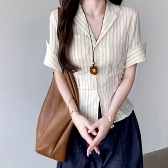 ストライプ柄の半袖シャツ。 ※トップスのみ販売です。モデルに使用している小物、アクセサリー等は商品内容に含まれません 【サイズ】 S : 着丈 56cm / バスト 78cm / ウエスト 70cm / 肩幅 34cm / 袖丈 12cm M : 着丈 57cm / バスト 82cm / ウエスト 74cm / 肩幅 35cm / 袖丈 13cm L : 着丈 58cm / バスト 86cm / ウエスト 78cm / 肩幅 36cm / 袖丈 14cm *採寸の方法や素材の特性上、記載サイズと1~3㎝ほどの誤差がある場合があります。 *海外規格の為、サイズ表記は目安となりますので、必ず採寸サイズでご確認ください。 《商品について》 ※当ショップは海外からのノーブランド商品になります。 海外製品のため日本商品に比べ品質が劣る場合がございます。 糸のほつれ、多少の汚れやシミ、ファスナーが固い、デザインの若干の違いなどは不良品には該当しませんのでご了承ください。 お手持ちの携帯やPCの画面設定の影響により、実物と色味が異なって見える場合がございます。 ※当ショップはお客様より注文を確認した上でメーカーに発注しておりますので返品、交換は出来かねます。ご了承下さいませ。 《発送について》 お取り寄せ商品のため、ご入金確認後、お届けまでに「10-24日程度」のお時間がかかります。 通常よりもお時間がかかってしまう場合もございます。 欠品や商品の不具合などにより、商品をお届けすることができず、ご注文をキャンセルさせていただく場合もございますのでご了承ください。 ※当ショップの商品はお取り寄せ商品につき、入金確認後メーカーへ発注させて頂きます。 ※メーカーにて在庫切れの場合は、速やかに返金させて頂きます。 《返品についての特約に関する事項》 ご注文確定後、発注後のキャンセルやサイズなどの内容変更は承っておりません。 注文時によくご確認ください 商品に欠陥がある場合を除き、基本的には返品や交換には応じません。 最後までご覧くださり、ありがとうございました。 AS12441