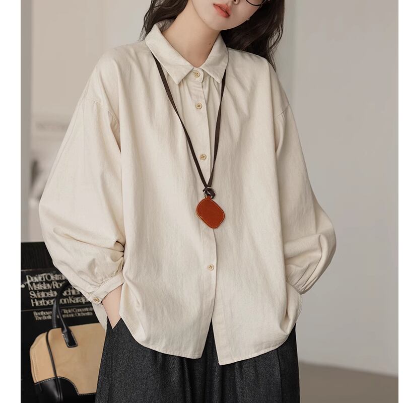 レディース シャツ ブラウス 長袖 オーバーシルエット レトロ AS11877