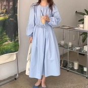 レディース 無地 ロングワンピース 長袖 ブルー アプリコット AS11894