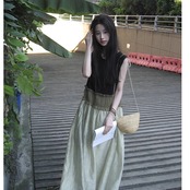 レディース ノースリーブ ワンピース ウエストシャーリング ロングスカート AS11895