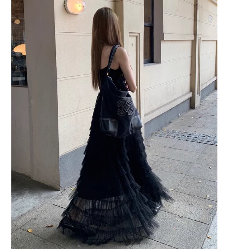 レディース キャミソールワンピース 透け感 ティアード チュール AS11896