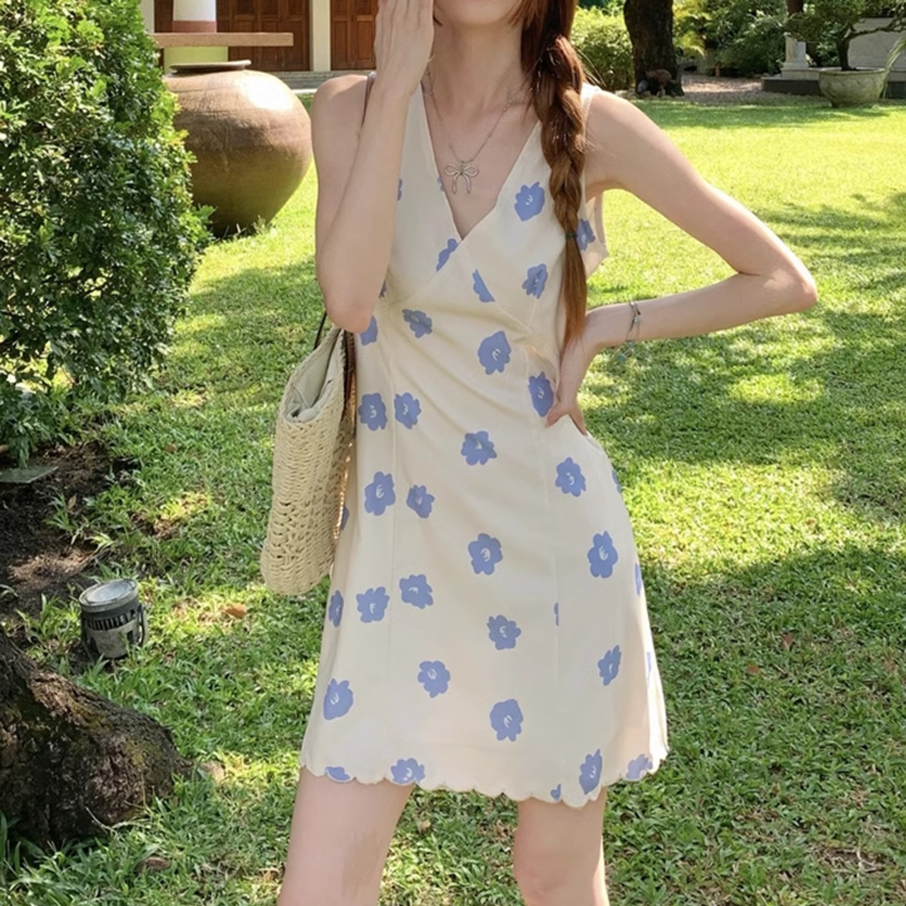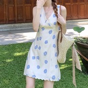 レディース 花柄 Vネック ノースリーブワンピース ミニ丈 AS11909