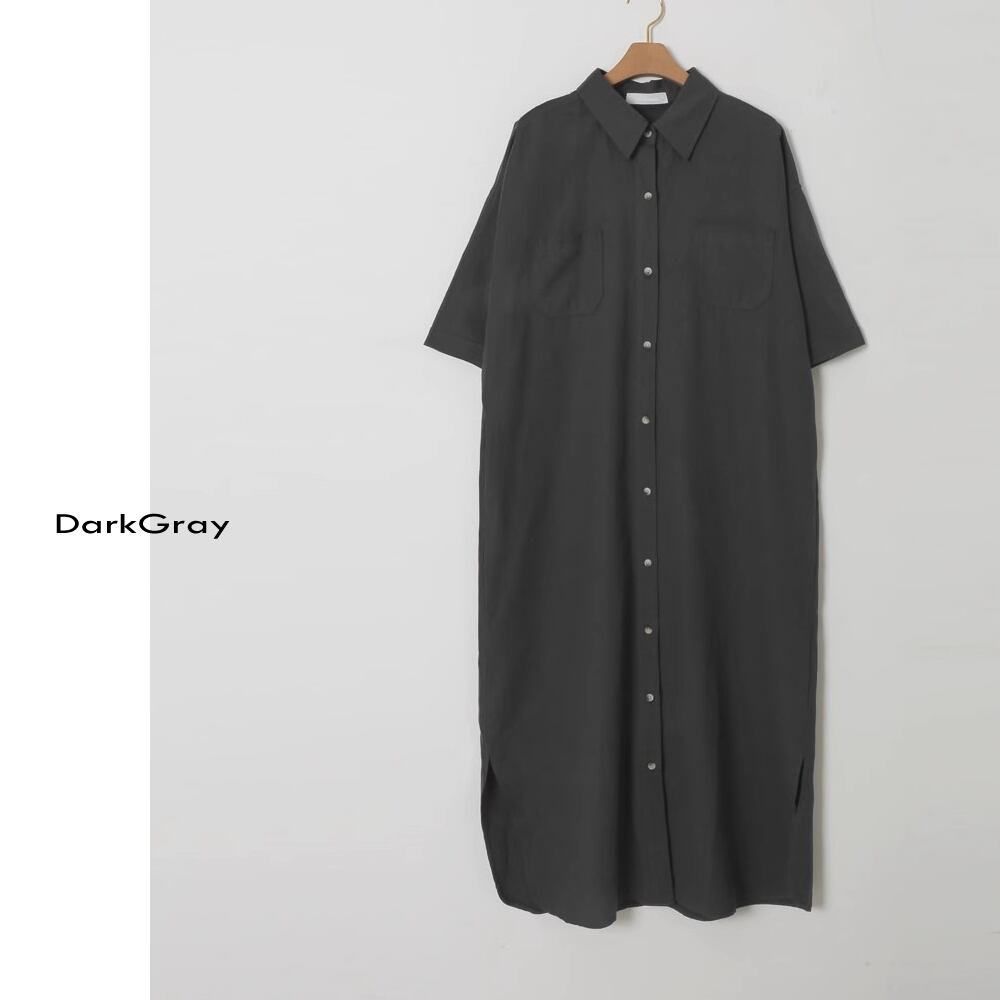 レディース 半袖 シャツワンピース ロング丈 シンプル グリーン グレー アプリコット AS11933