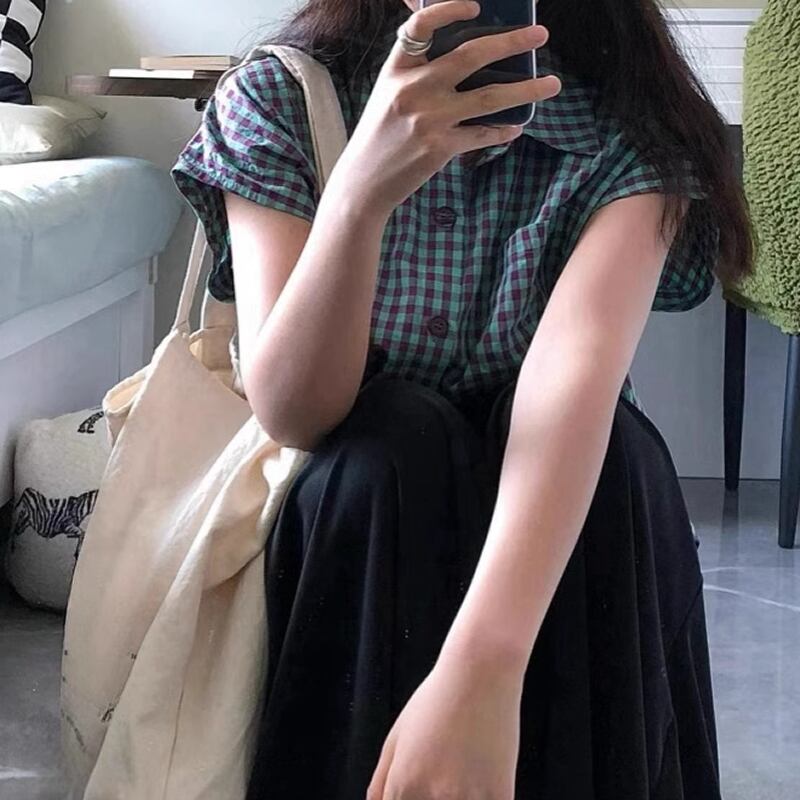 レディース チェック柄 半袖 シャツ レトロ AS11963