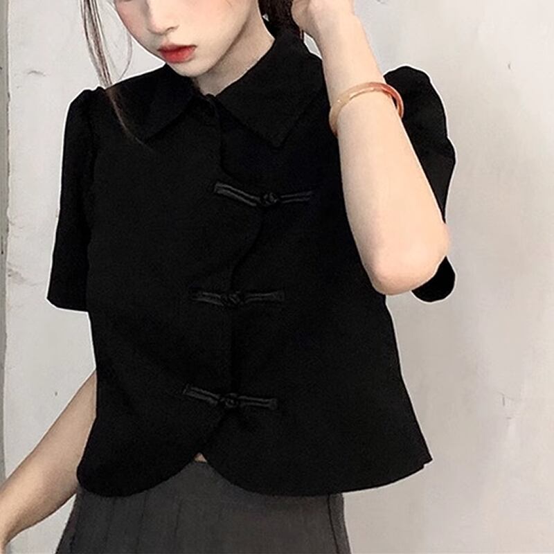 レディース 半袖 トップス ブラウス 中国風デザイン ショート丈 AS11975