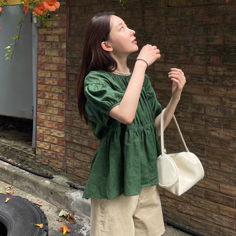 レディース 無地 半袖 トップス ブラウス グリーン AS12028