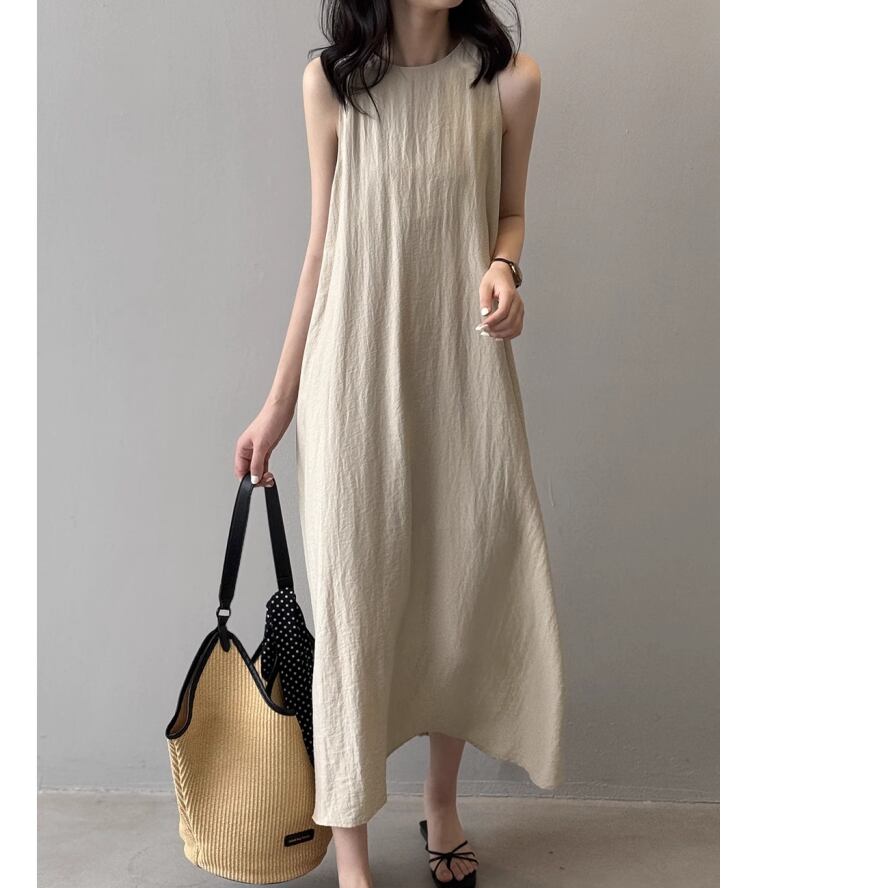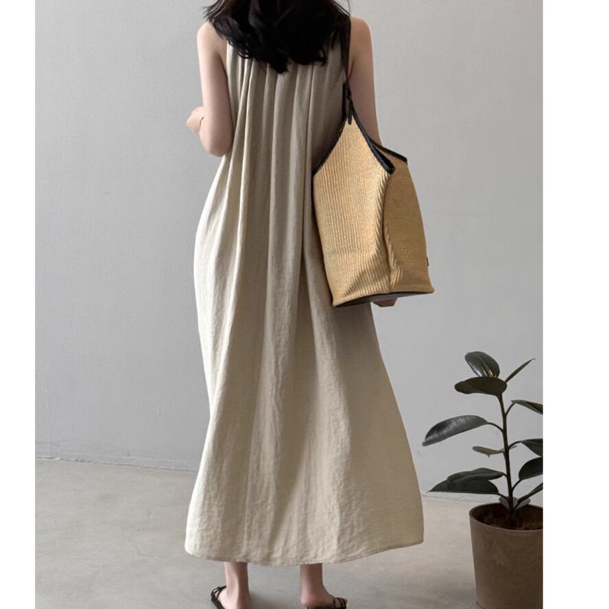 シンプルなノースリーブワンピース。