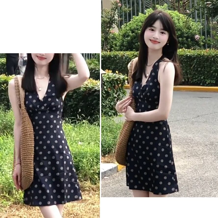 レディース ノースリーブ 花柄 Vネック ミニ丈ワンピース AS12083
