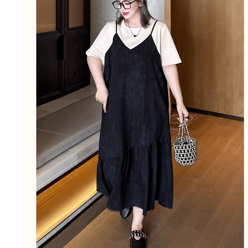Tシャツとキャミソールワンピースのドッキングデザインワンピース。