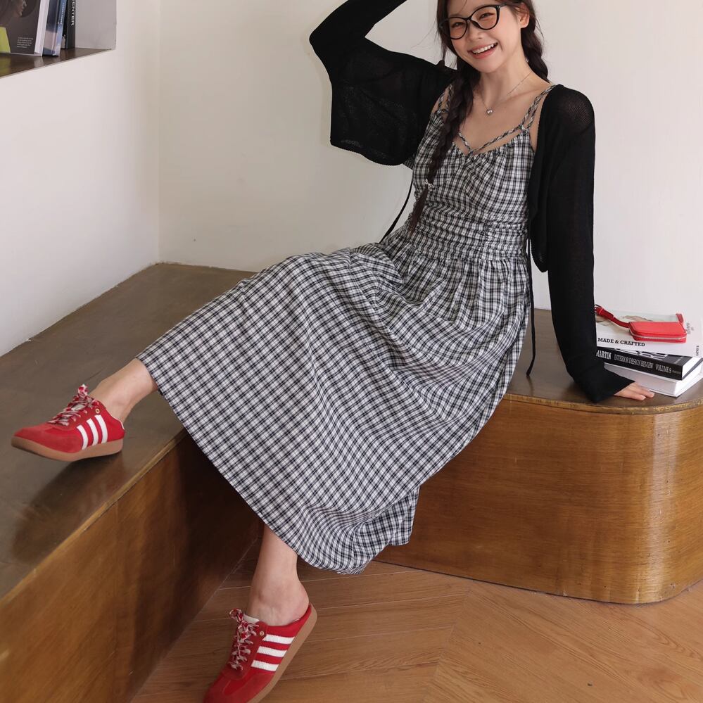 レディース チェック柄 大きいサイズ キャミソールワンピース ロング丈 AS12101