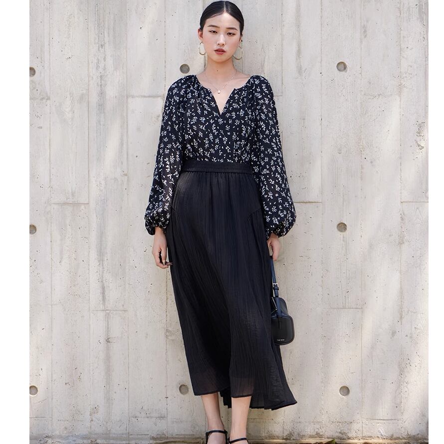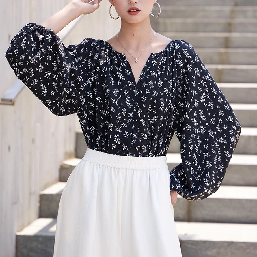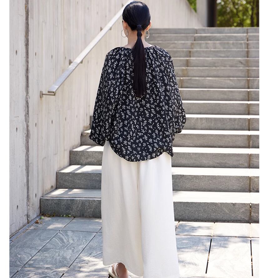 レディース 花柄 9分袖 ブラウス トップス ブラック AS12232