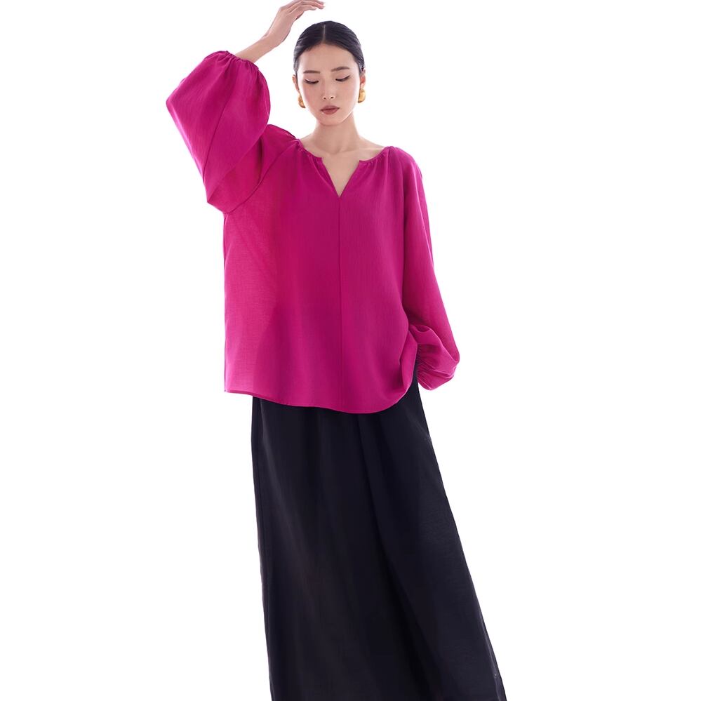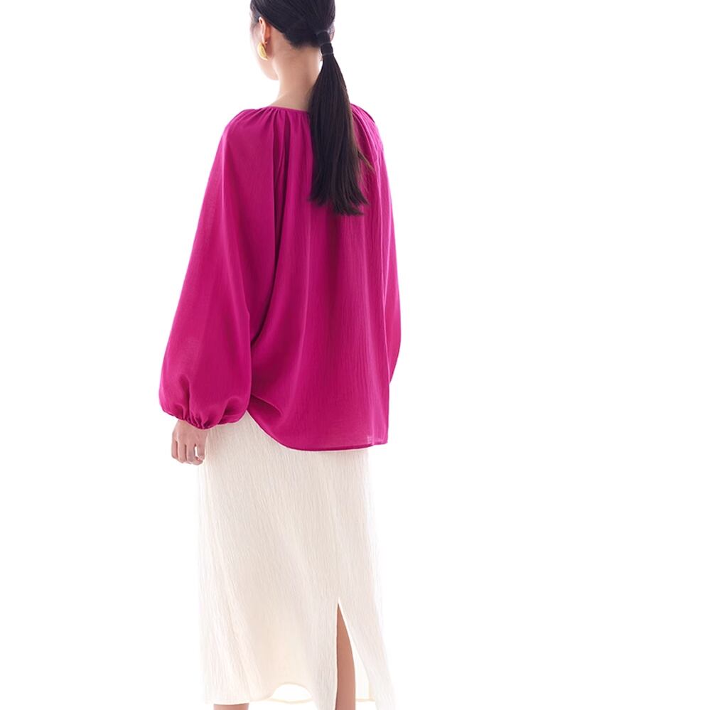 レディース 無地 9分袖 トップス ブラウス ドラゴンフルーツカラー AS12236