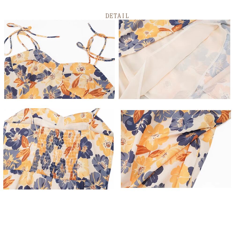 レディース 花柄 サイドスリットキャミソールワンピース ロング丈 ビーチドレス AS12242