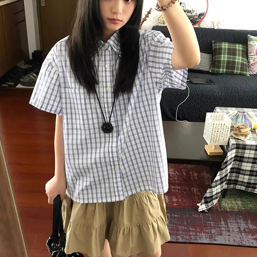 レディース チェック柄 半袖 トップス シャツ 薄手 AS12253