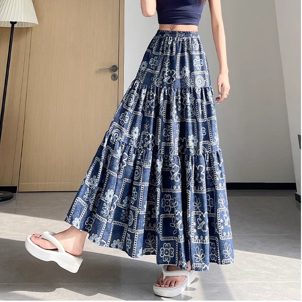 レディース 花柄 ロングスカート エスニック風 ハイウエスト AS12278