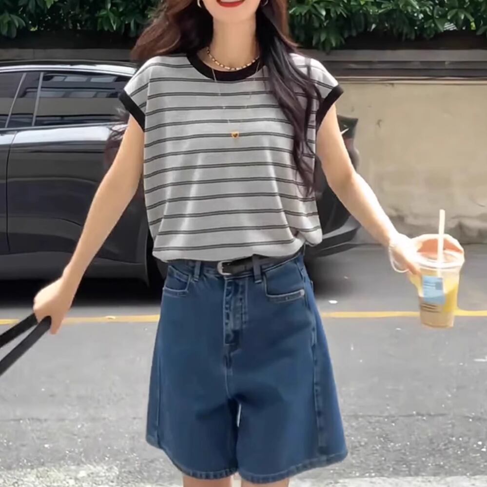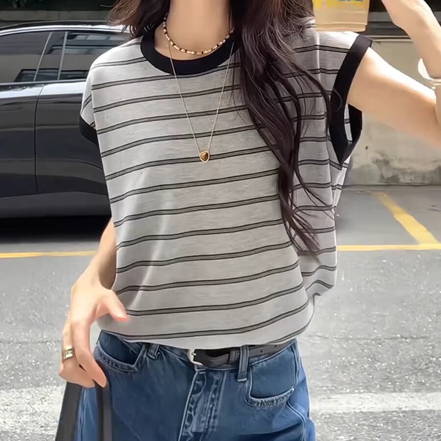 レディース 半袖 トップス Tシャツ ボーダー柄 グレー AS12283