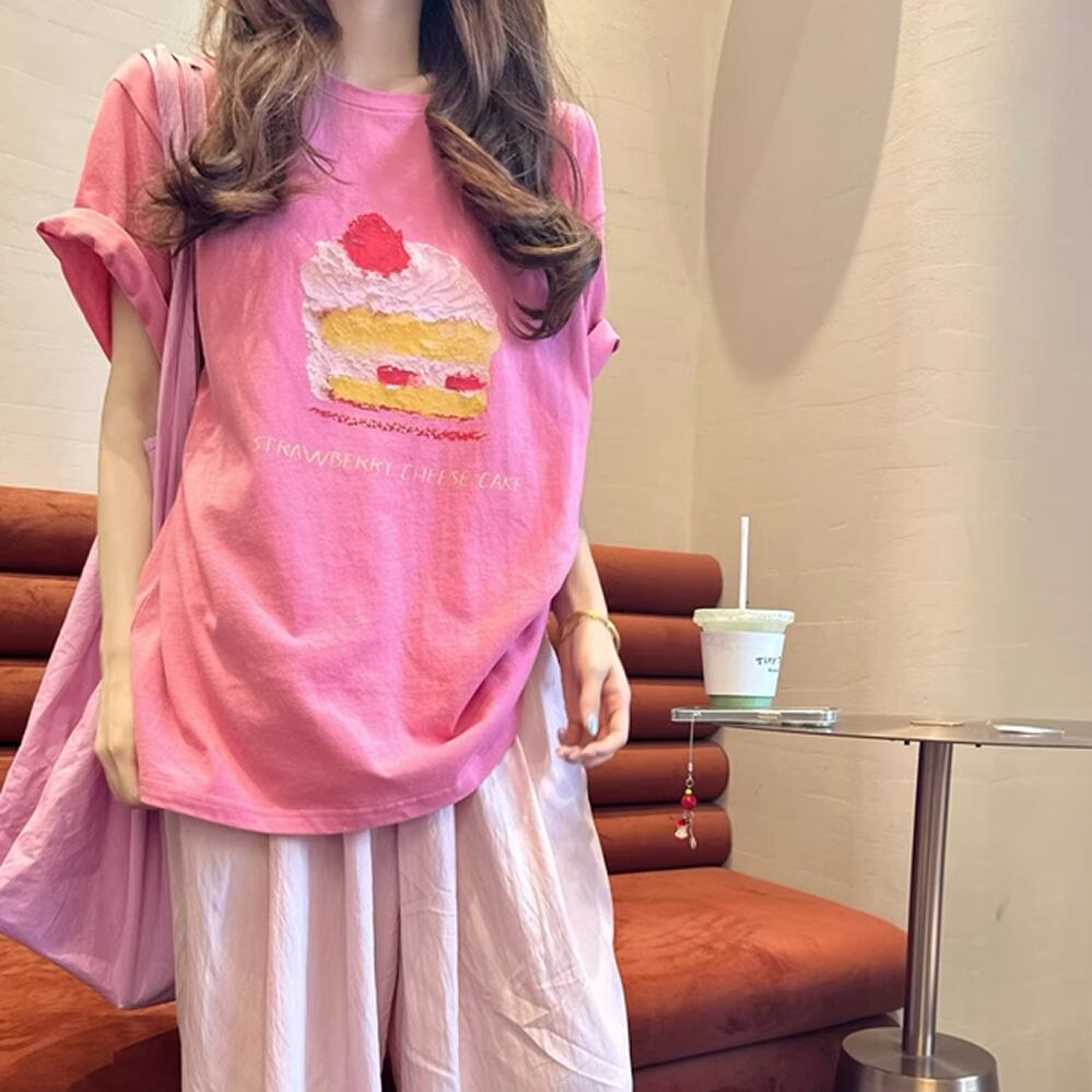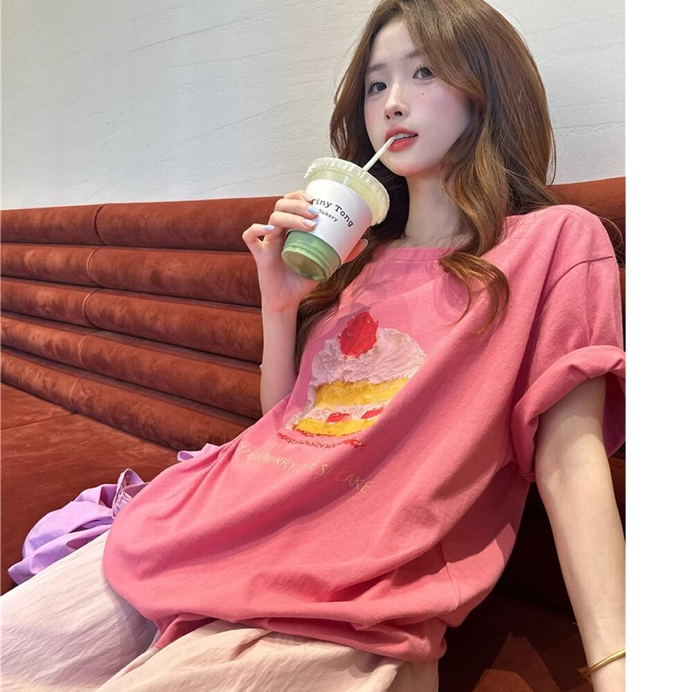 レディース 半袖 トップス Tシャツ オーバーシルエット ピンク AS12284