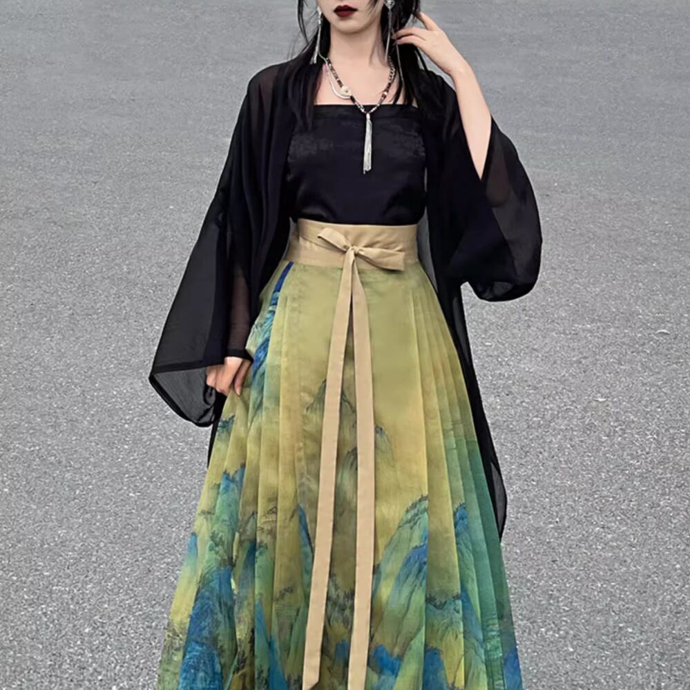 レディース 中国風デザイン カーディガン ブラック ロング丈 シアー 透け感 AS12289