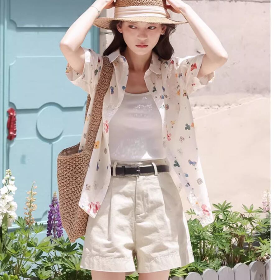 レディース 蝶柄 レトロ トップス シャツ 半袖 AS12295