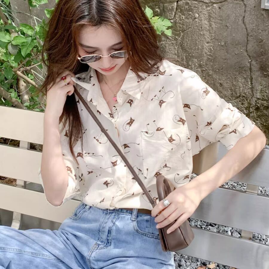 レディース ネコ柄 レトロ トップス シャツ 半袖 AS12296