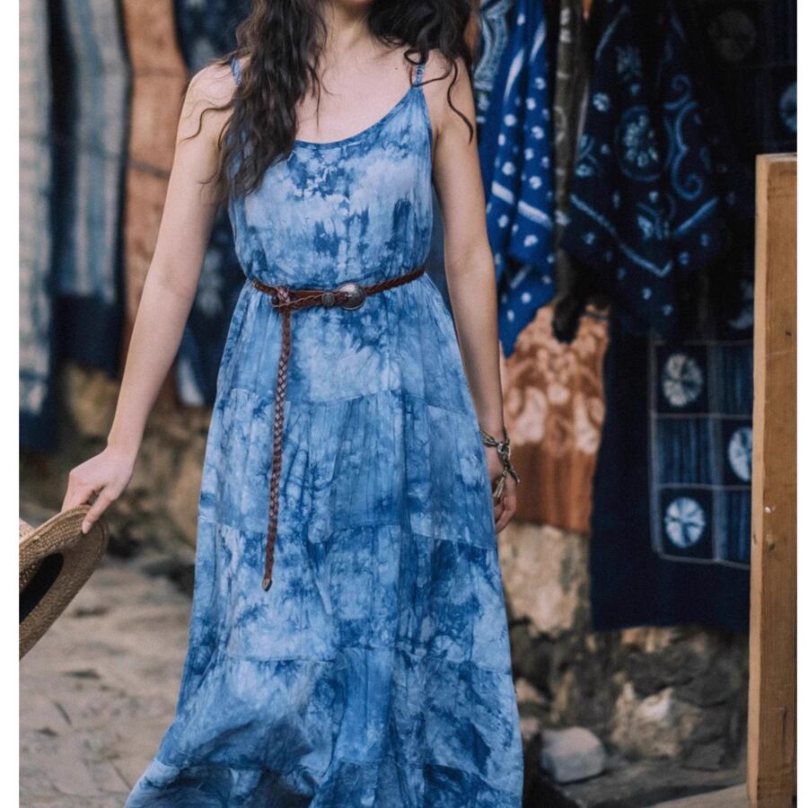 レディース タイダイ柄 キャミソールワンピース ロング丈 ブルー AS12314