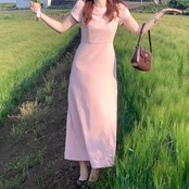 レディース 半袖 ロングワンピース バックスリット ピンク ブラック AS12332