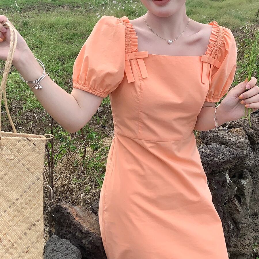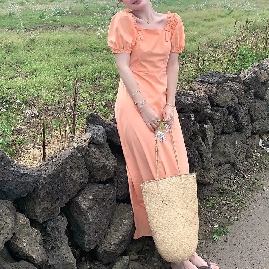 レディース 半袖 ロングワンピース バックスリット オレンジ AS12333