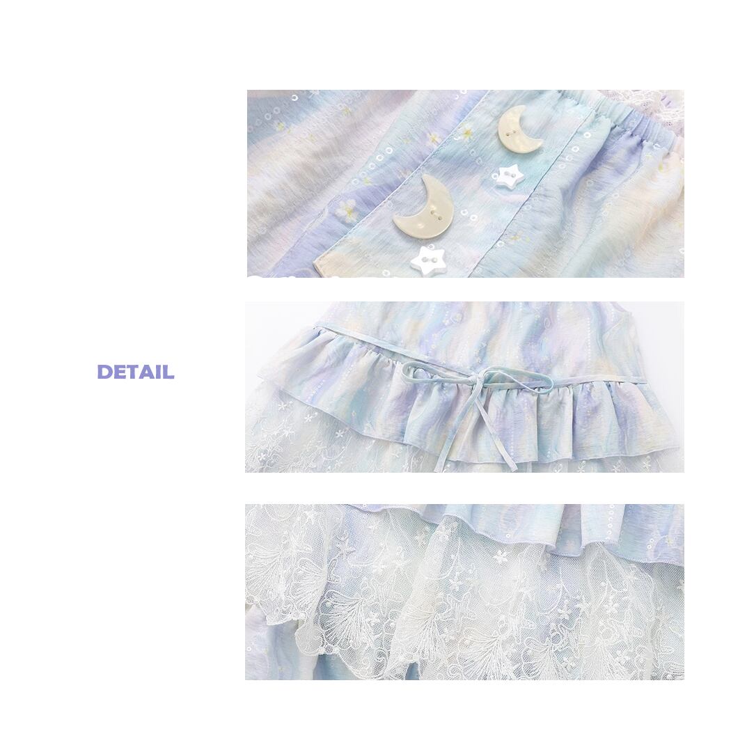 レディース フリル キャミソールワンピース レース ブルー AS12347