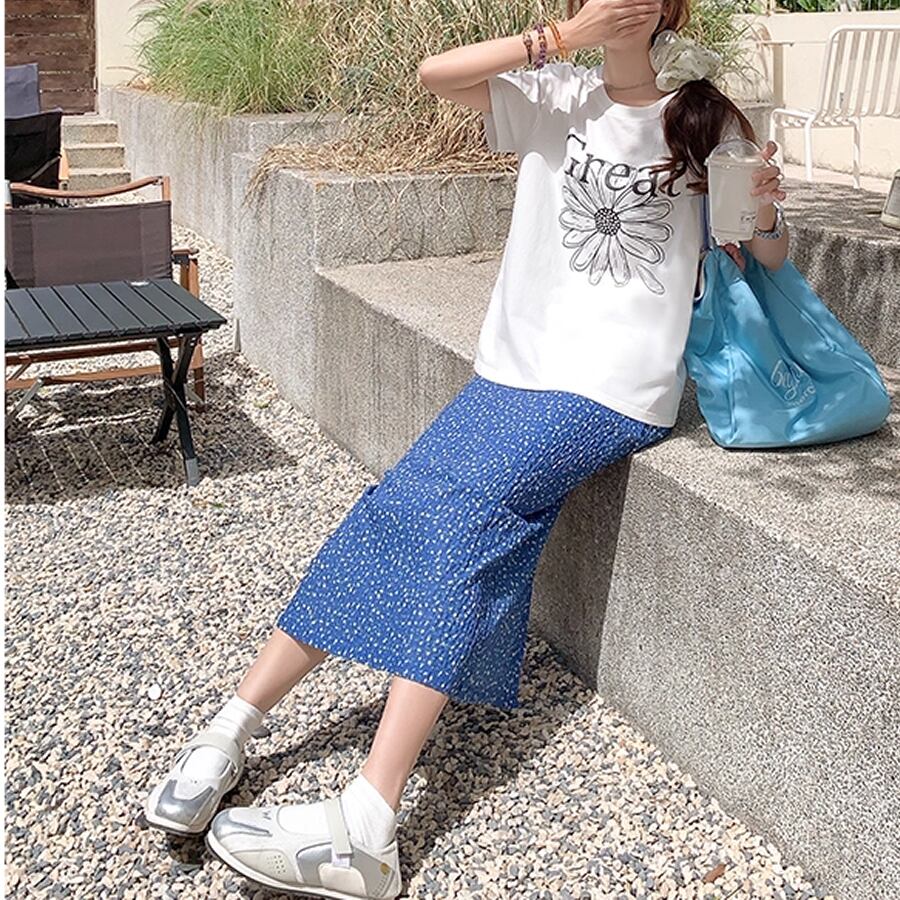 レディース 花柄 スカート ロング丈 ブルー バックスリット AS12351