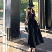レディース 無地 キャミソールワンピース ロング丈 ホワイト ブラック AS12352