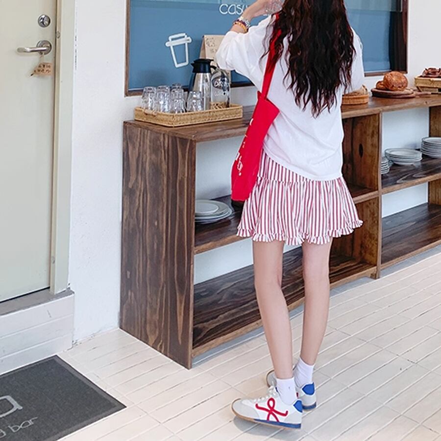 レディース ストライプ柄 ミニスカート 赤 レッド AS12363