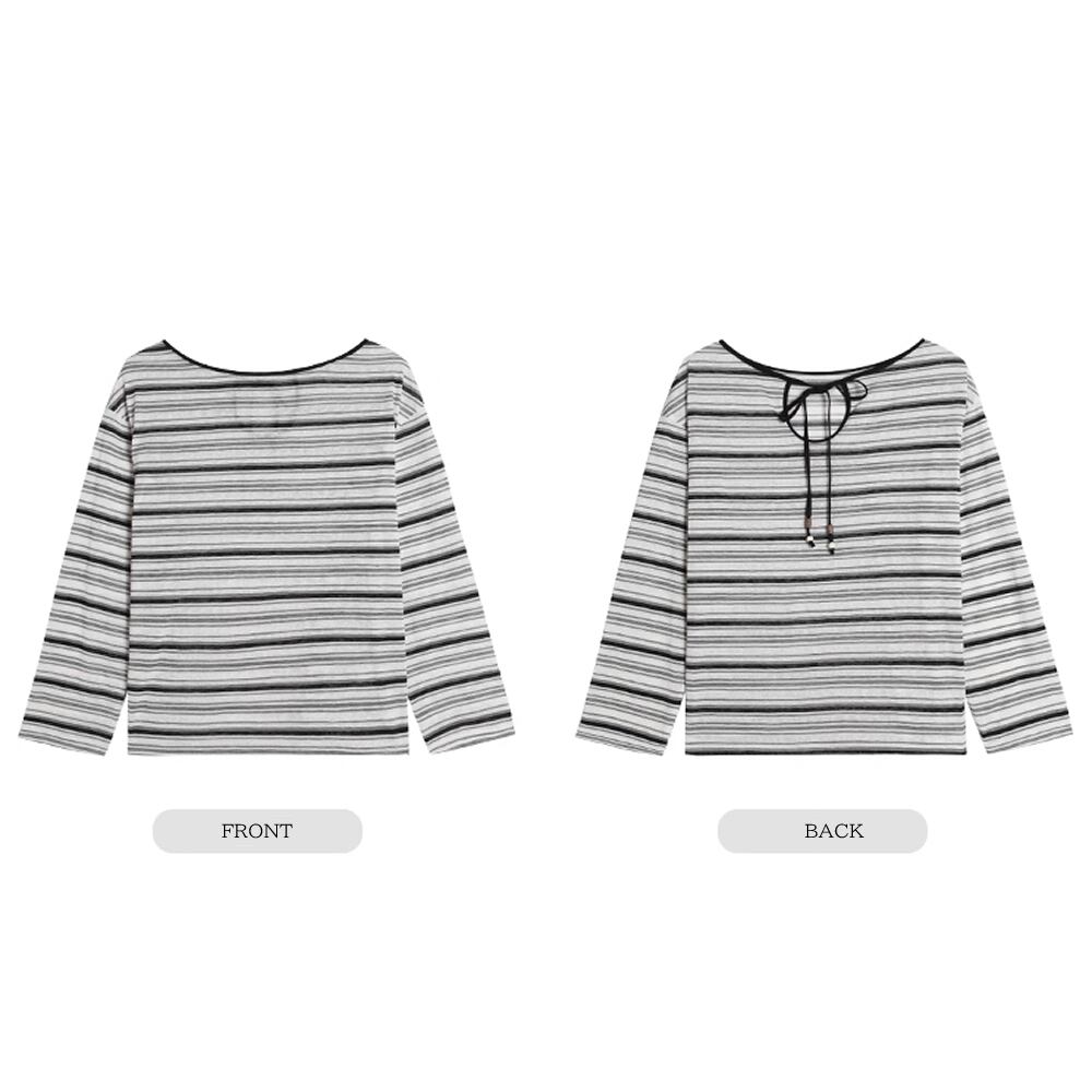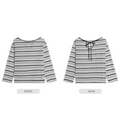 レディース ボーダー柄 長袖 トップス ブラウス バックリボン AS12365