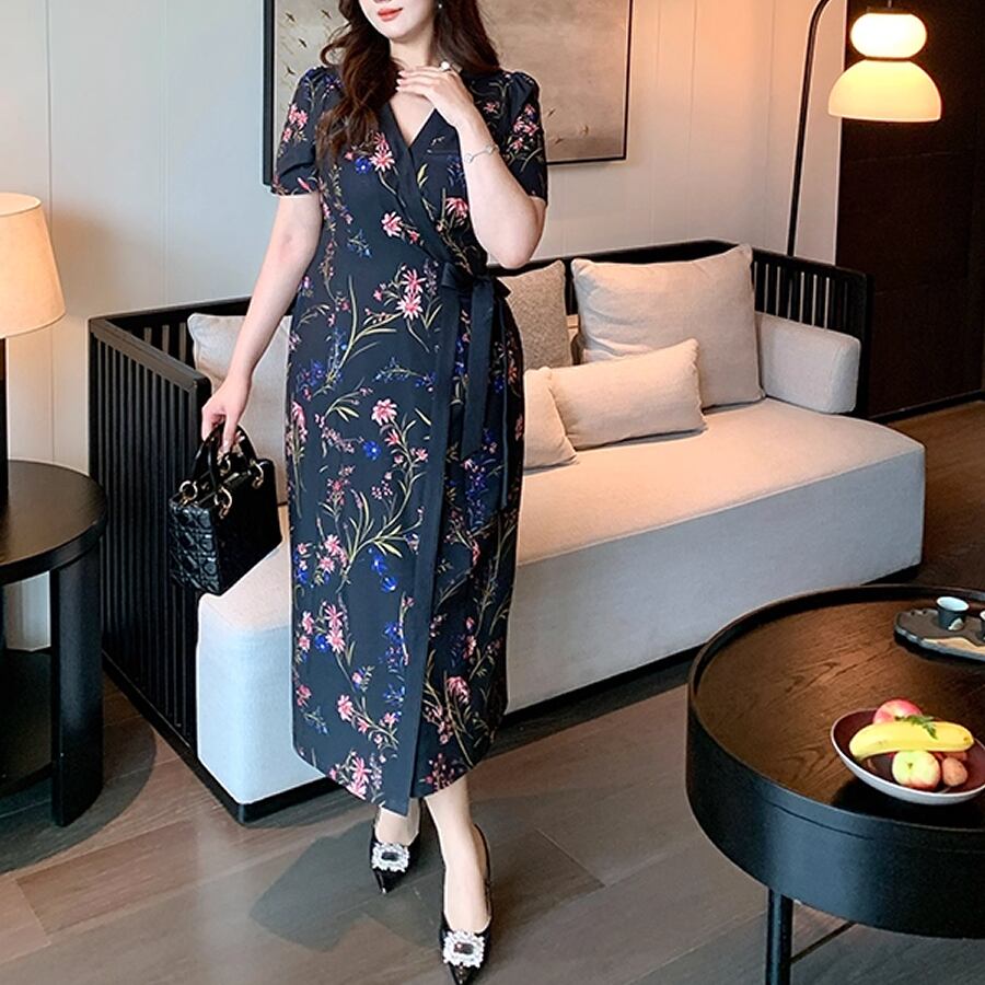 レディース 花柄 中国風デザイン ロングワンピース 巻きワンピース 大きいサイズ AS12369