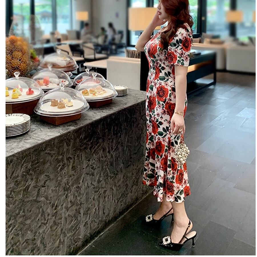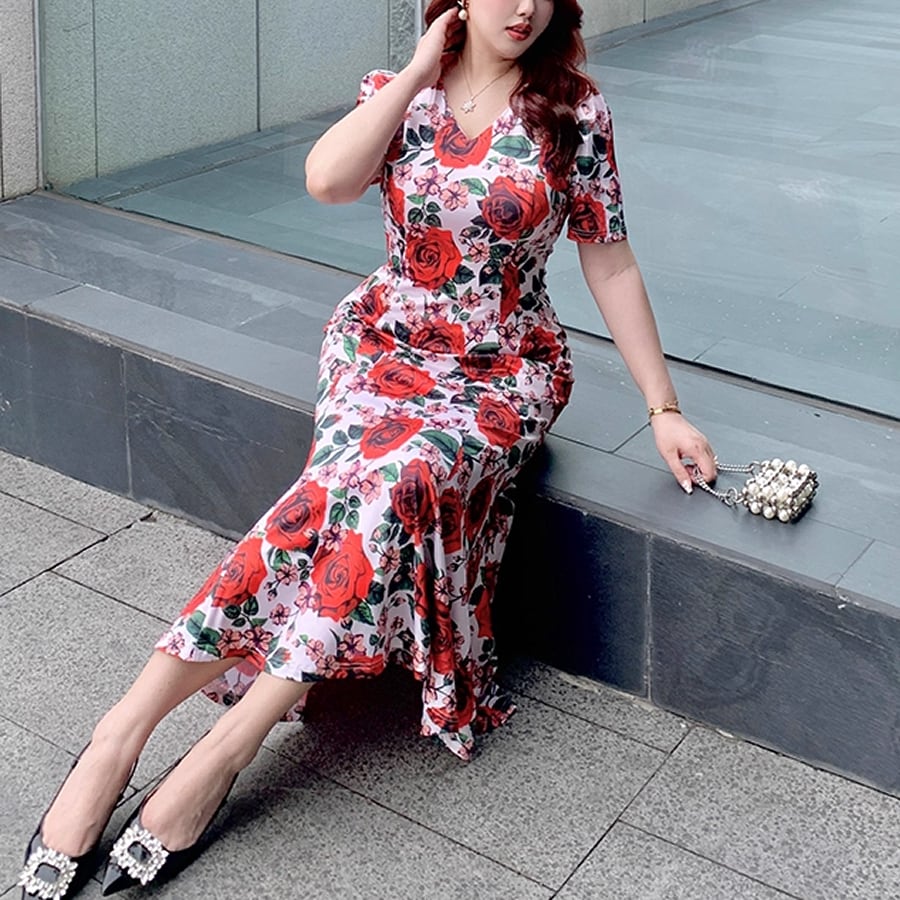 レディース 花柄 バラ柄 ロングワンピース 半袖 大きいサイズ AS12370