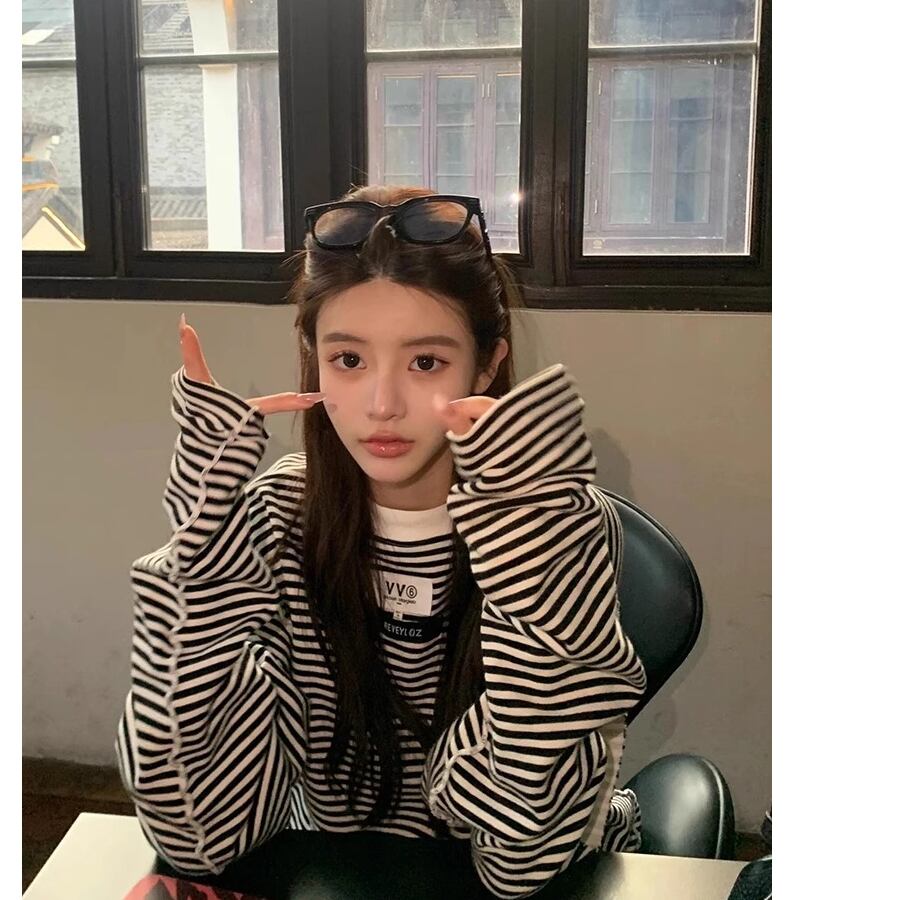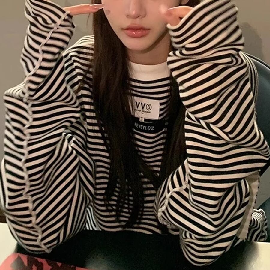 レディース 長袖 ボーダー柄 トップス Tシャツ ロング丈 白黒 AS12410