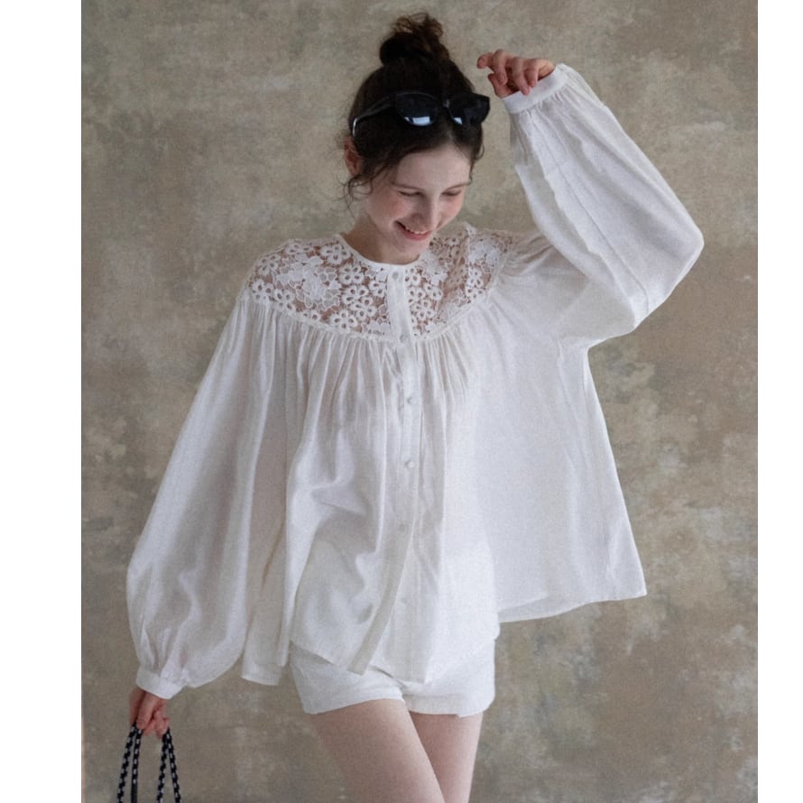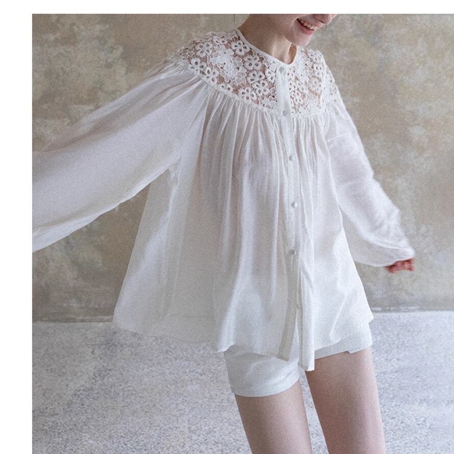 レディース 長袖 トップス ブラウス 花柄レース ホワイト 透け感 AS12419