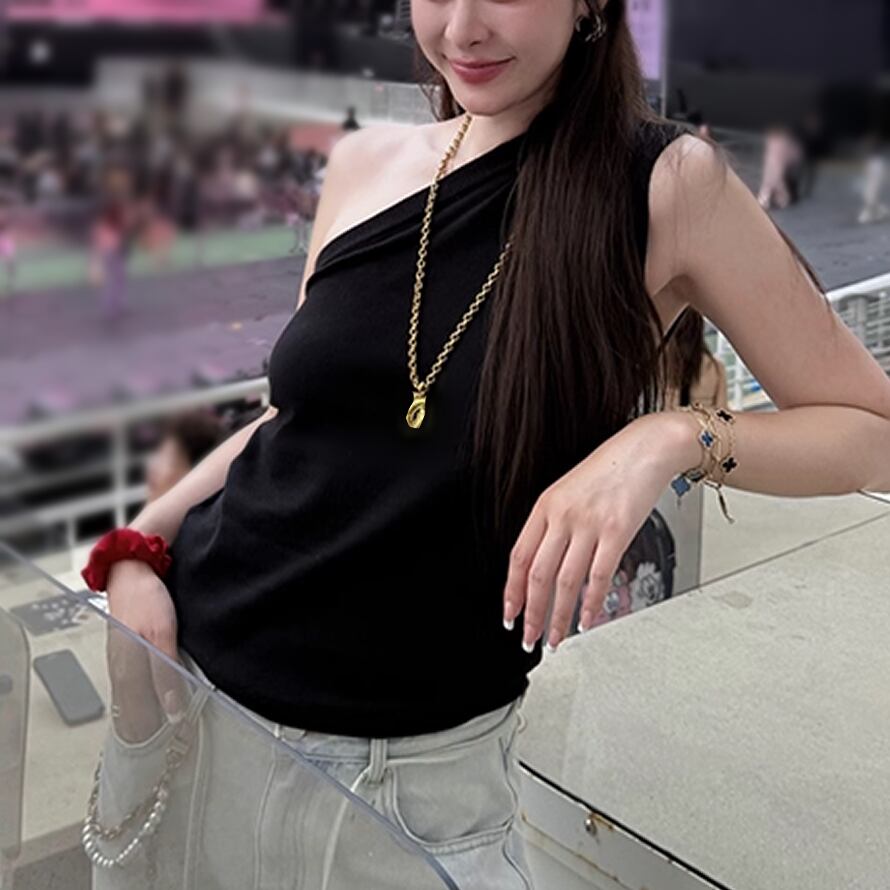 レディース ノースリーブ ワンショルダー トップス カットソー ブラック AS12421