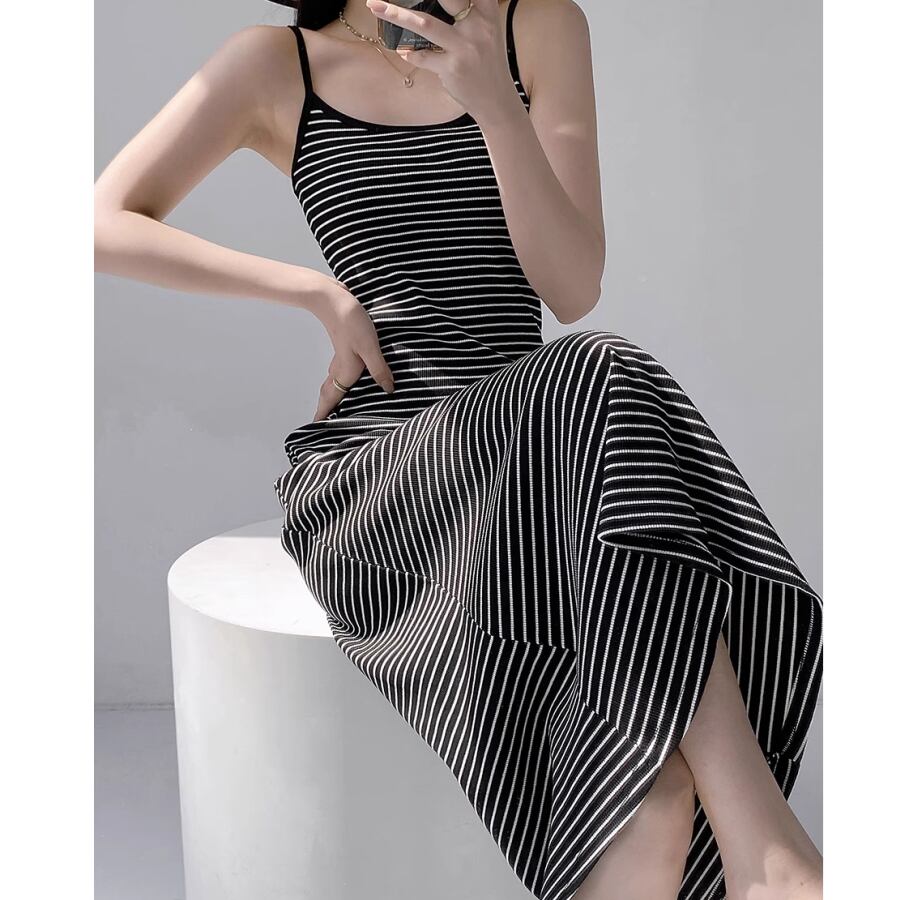 レディース ボーダー柄 キャミソールワンピース ロング丈 AS12435
