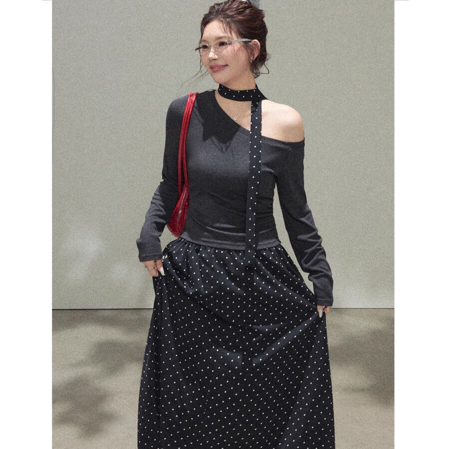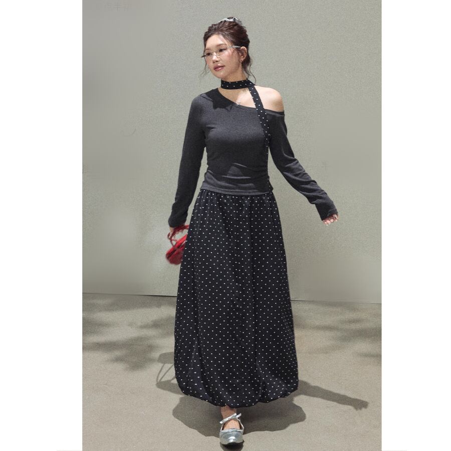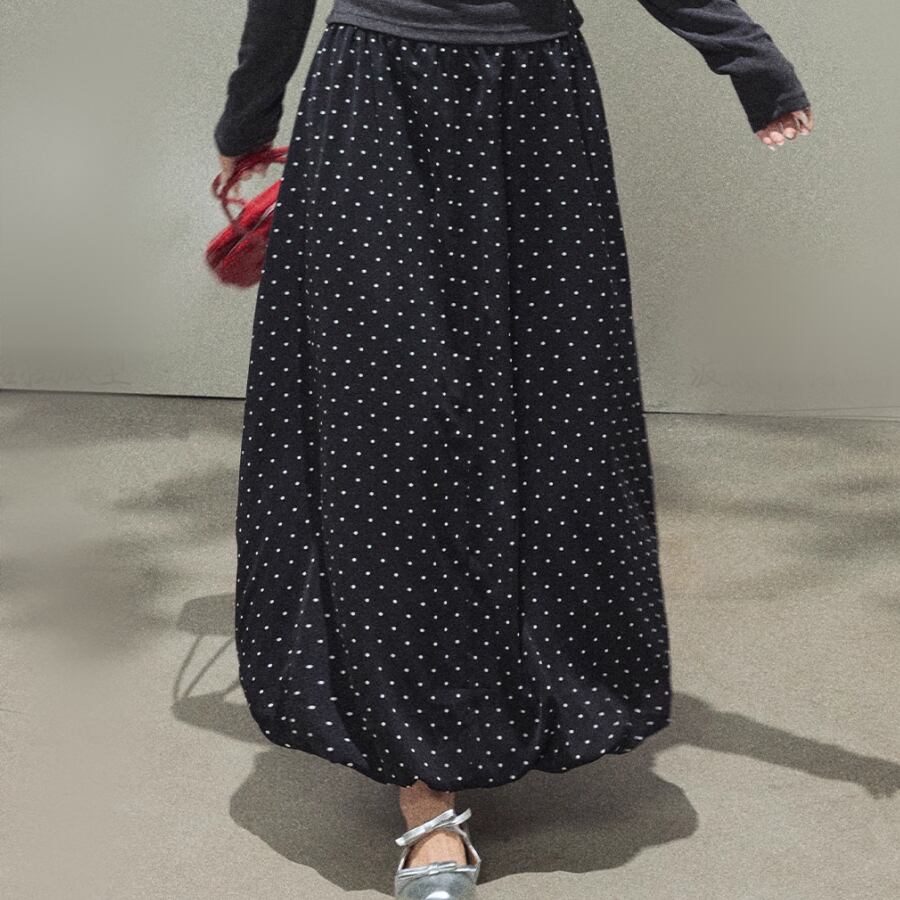 レディース ドット柄 ロングスカート ブラック 大きいサイズ AS12438