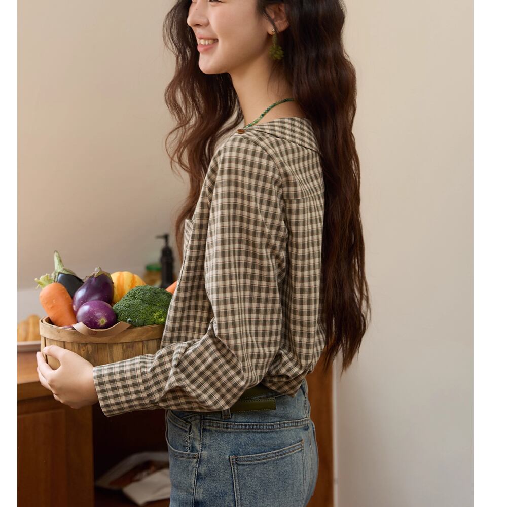レディース 長袖 トップス チェック柄 シャツ グリーン AS12471