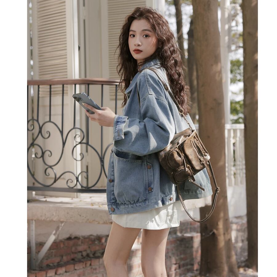 レディース 長袖 トップス デニムジャケット レトロブルー AS12477