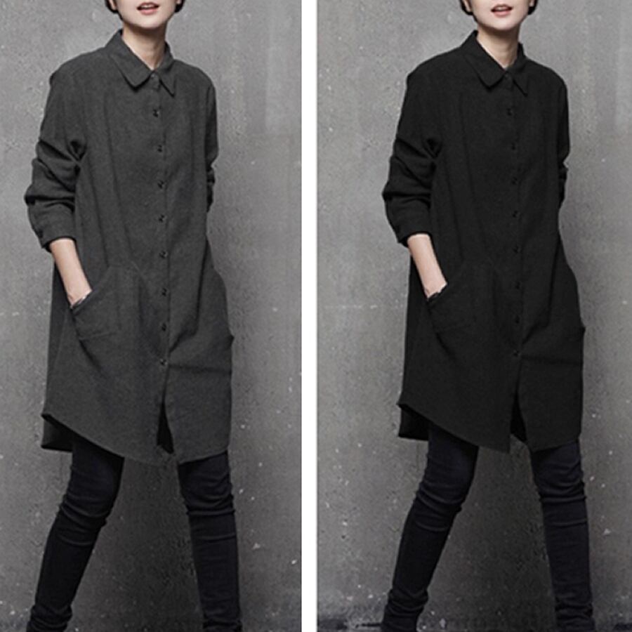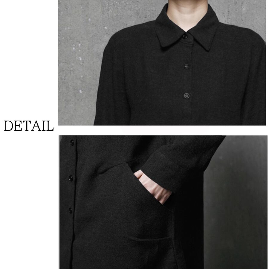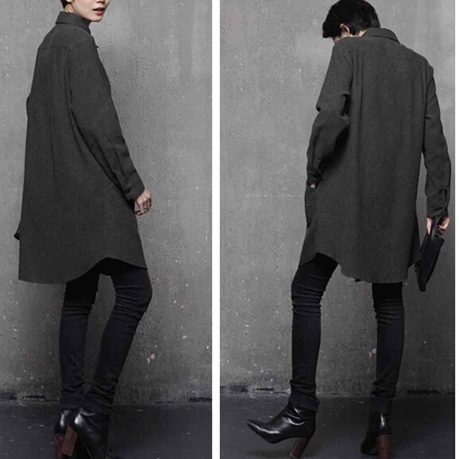 レディース 長袖 トップス シャツ ロング丈 厚手 ブラック グレー AS12479