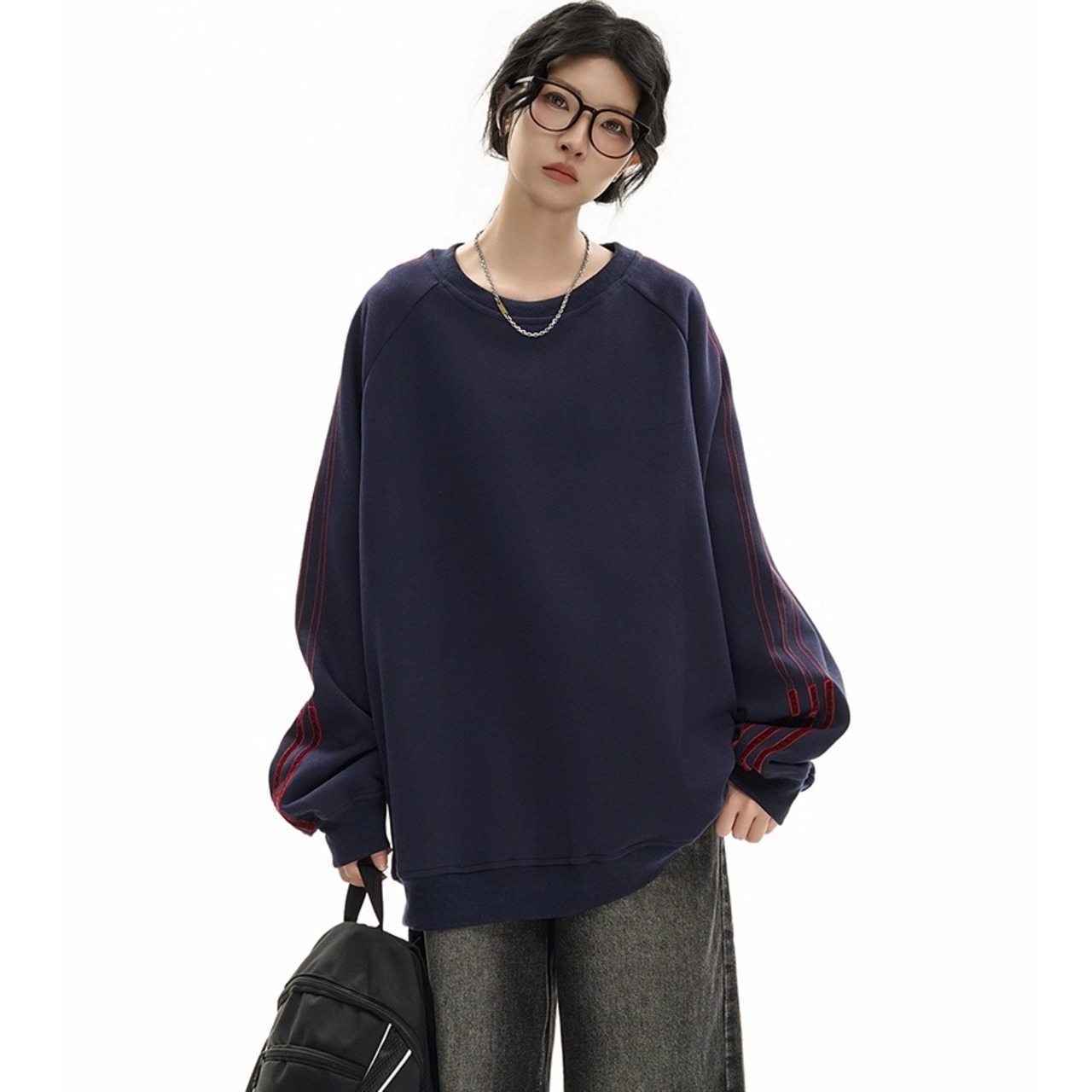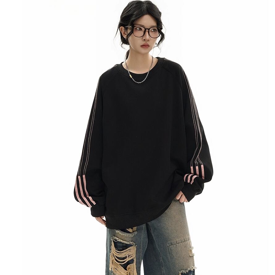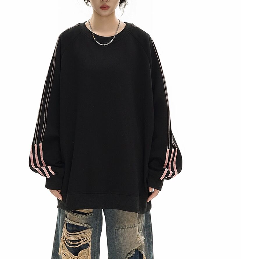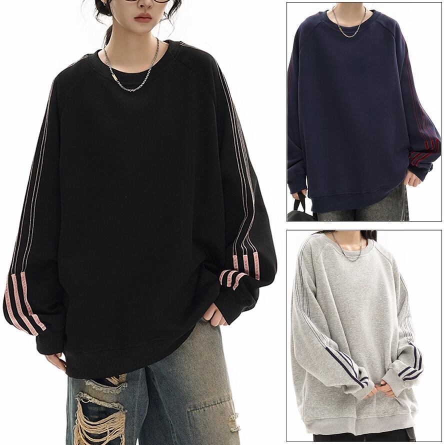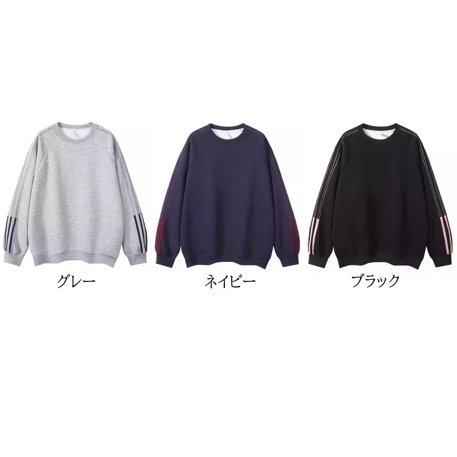 レディース サイドライン 長袖 トップス トレーナー ブラック ネイビー グレー AS12486