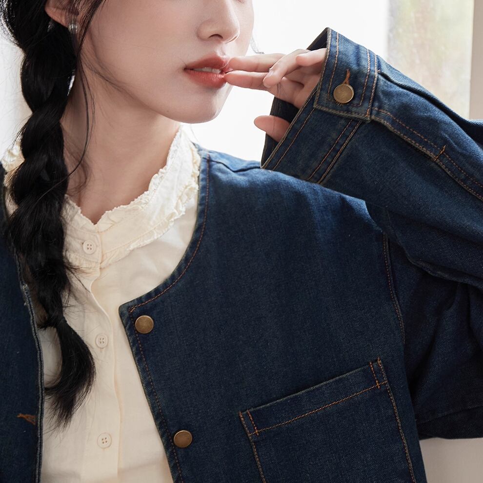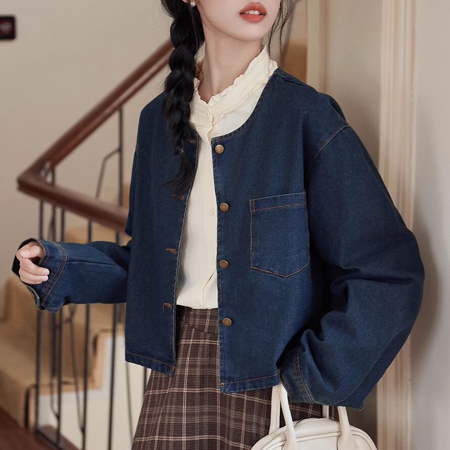 レディース トップス デニムジャケット 長袖 ネイビー AS12491