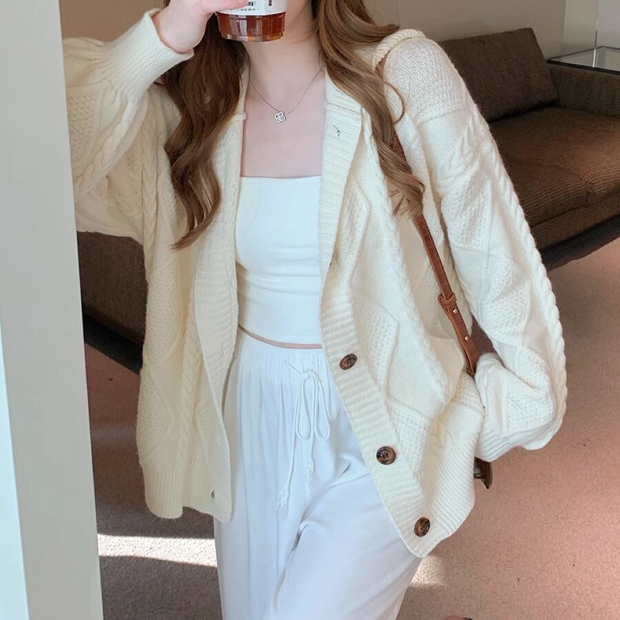 レディース トップス 長袖 フード付き カーディガン クリーム AS12498