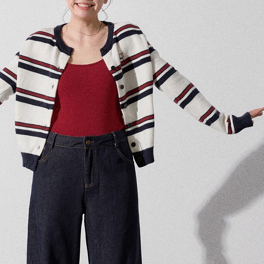 ボーダー柄のカーディガン。