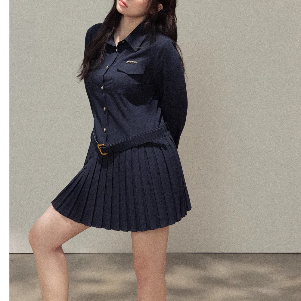 レディース 長袖 ミニ丈 シャツワンピース プリーツスカート 大きいサイズ AS12521