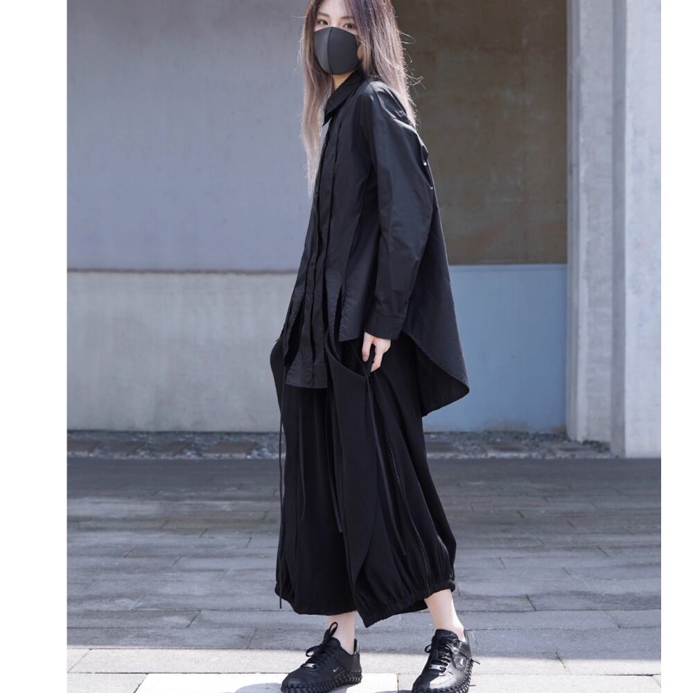 レディース シャツ トップス 長袖 ロング丈 ブラック AS12533
