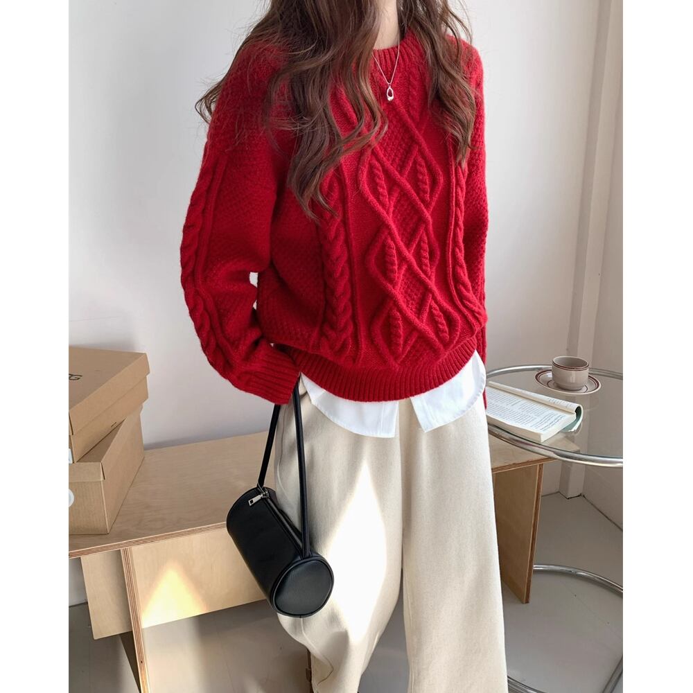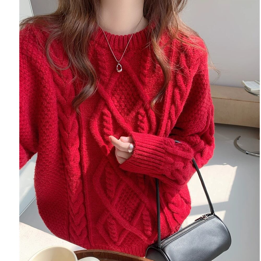 レディース セーター 厚手 トップス 長袖 グリーン レッド アプリコット AS12538